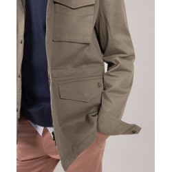 Chaqueta de manga larga de la marca El Ganso. Con Corte Regular Fit. Cuello alto, múltiples bolsillos tipo cargo con tapeta y cierre mediante cremallera oculta por tapeta con botones tipo snap. Patrón liso en color verde.