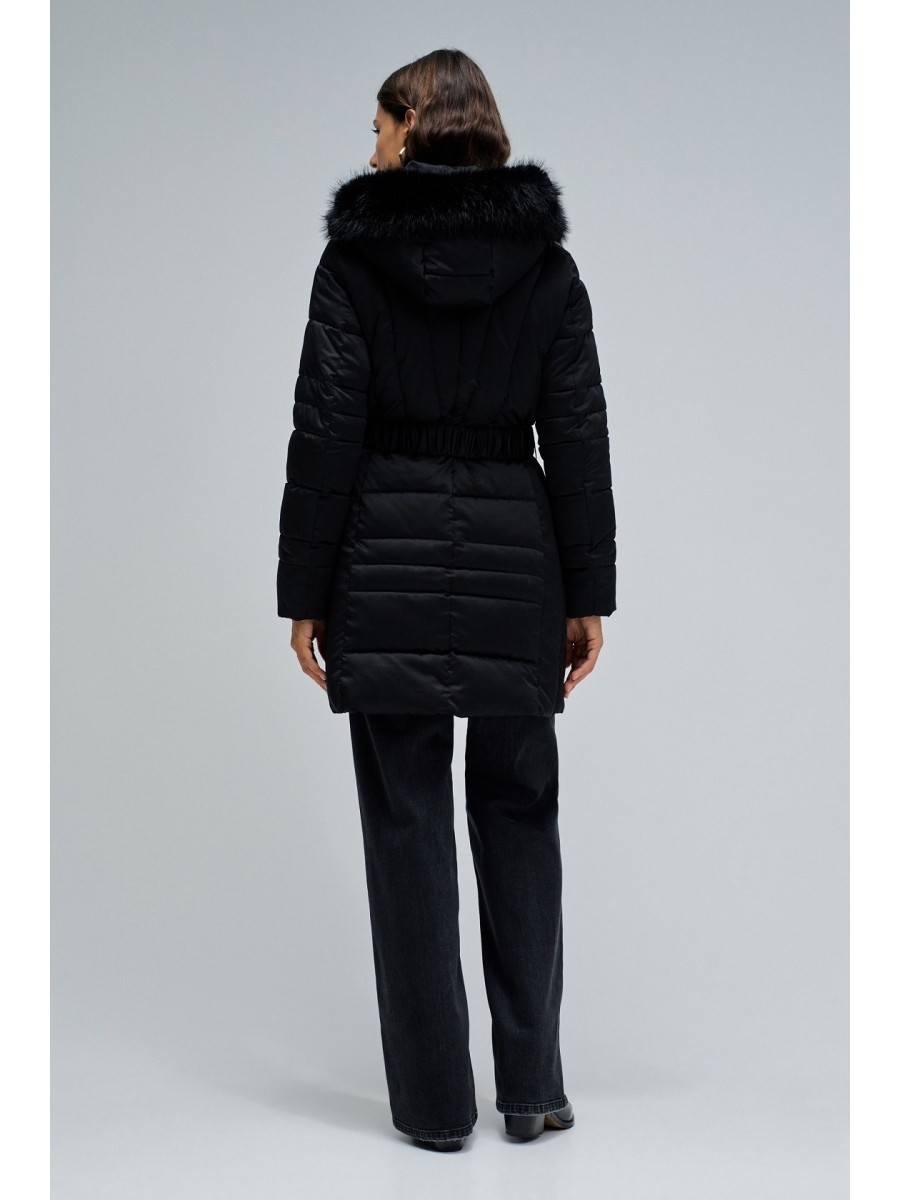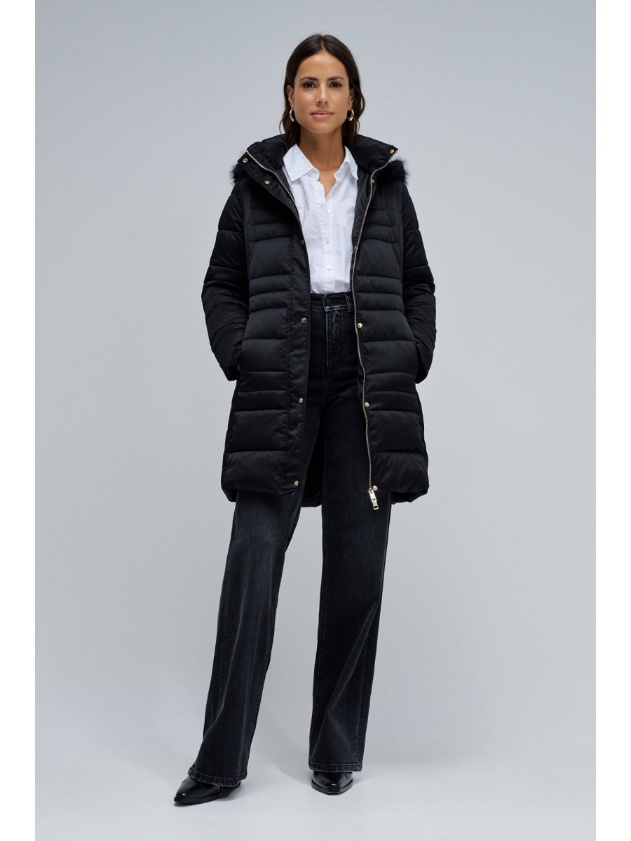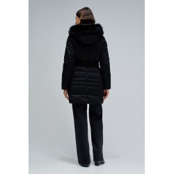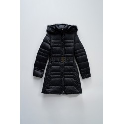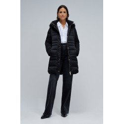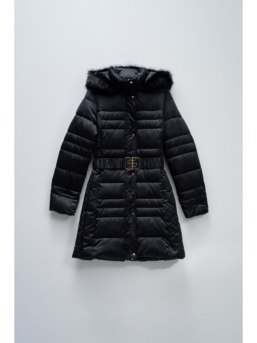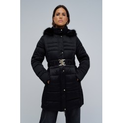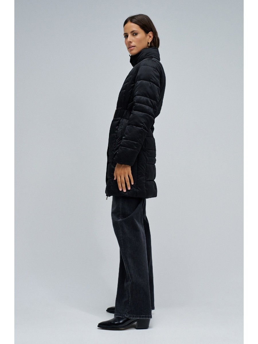 Chaqueta tipo puffer de la marca Salsa. Con corte slim fit. Capucha. Cierre de cremallera y botones. Con dos bolsillos laterales. Cinturón del mismo tejido elástico. Patrón liso acolchado en negro.