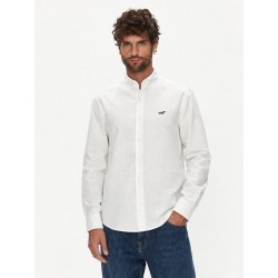 Camisa de manga larga de la marca Gilbert Teckel. Con corte Regular Fit y cuello clásico de solapa. Cierre de botones. Patrón liso en color blanco con logo distintivo de la marca bordado en el pecho.