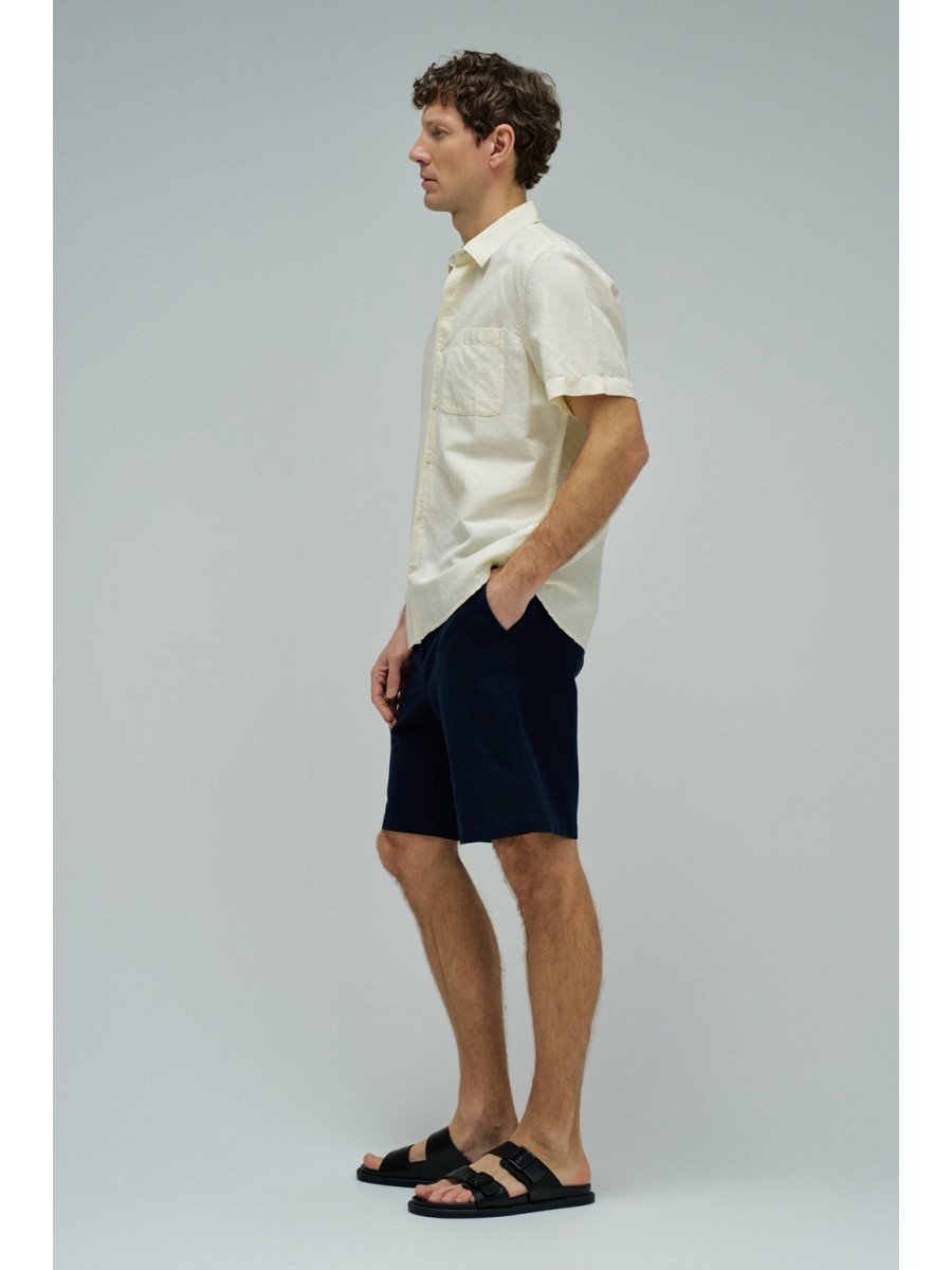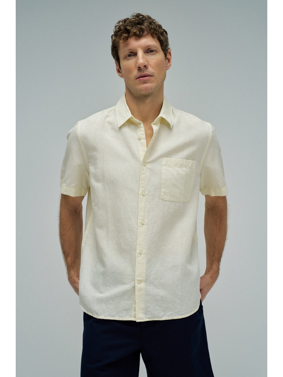 Camisa de lino de manga corta de la marca Salsa Jeans. Con corte Regular Fit y cuello clásico de solapa. Cierre de botones. Detalle de bolsillo en el pecho. Patrón liso en color amarillo.