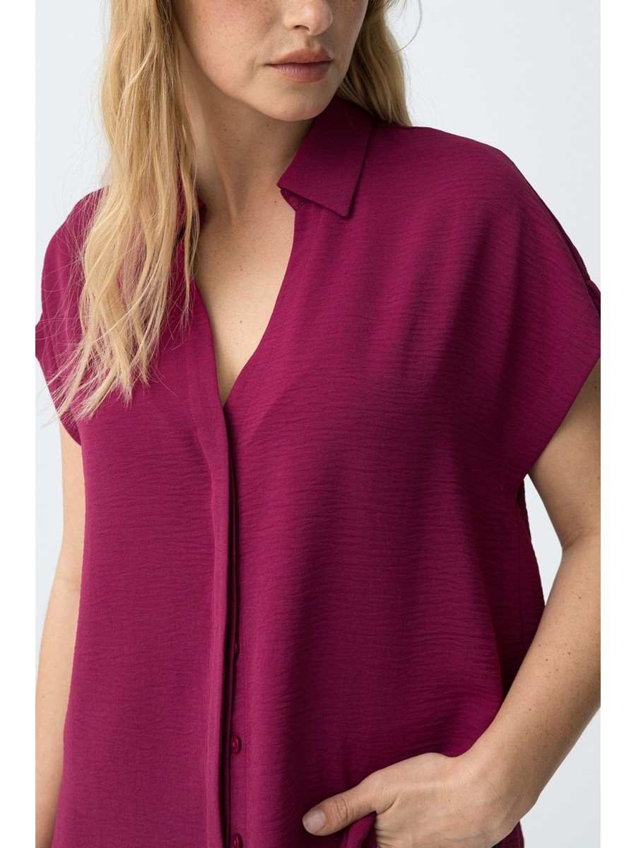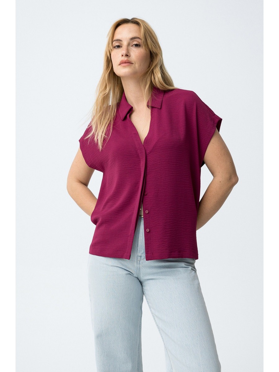 Camisa de manga corta de la marca Tiffosi. Con corte relaxed, cuello clásico y cierre frontal oculto. Escote en V. Patrón liso en color rosa fucsia.