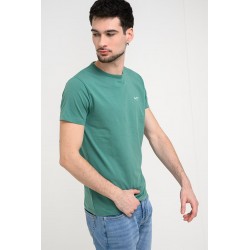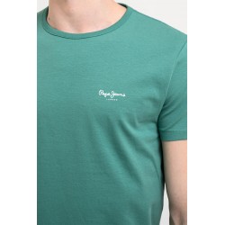 Camiseta de manga corta de la marca Pepe Jeans. Con corte slim fit y cuello redondo. Patrón liso en color verde con logo distintivo de la marca en el pecho.