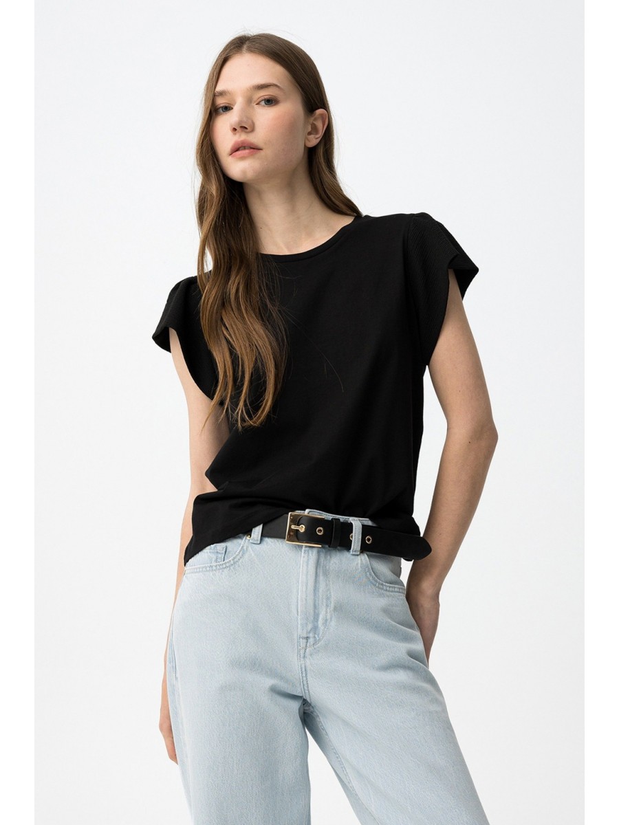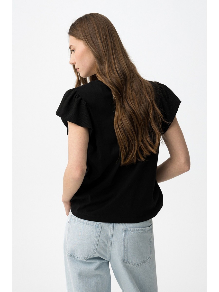 Camiseta de manga corta de la marca Tiffosi. Con corte regular fit y cuello redondo. Detalle volante en manga. Patrón liso en color negro.