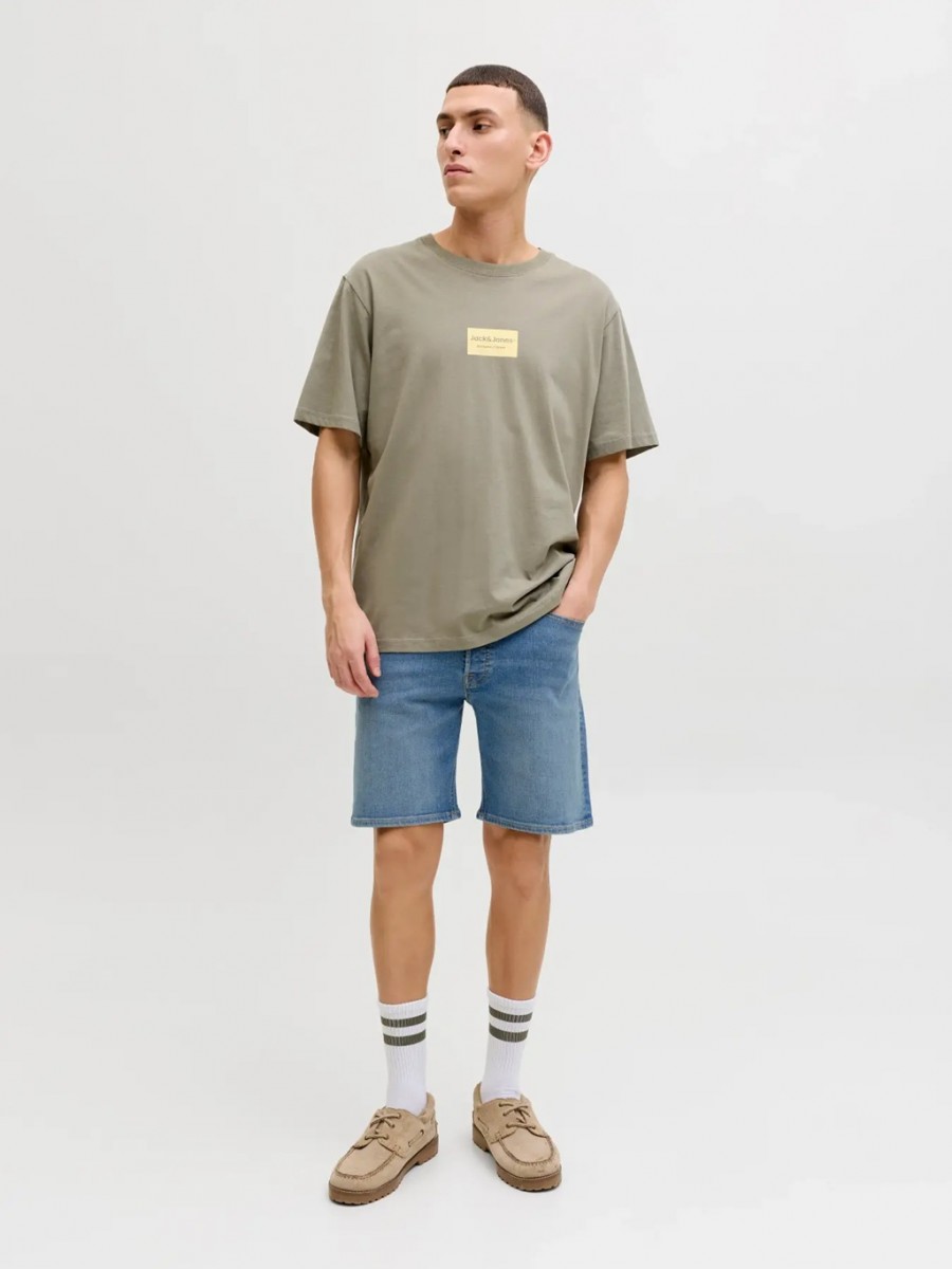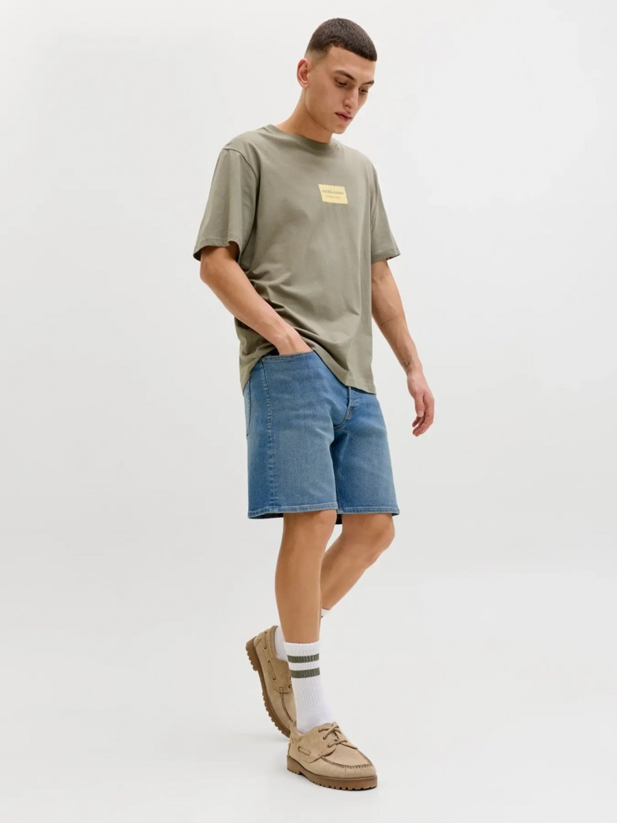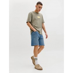 Pantalones cortos tipo bermudas de la marca Jack Jones. Con corte Regular Fit y cintura media. Cierre de botones. Cinco bolsillos. Patrón lavado en color azul.