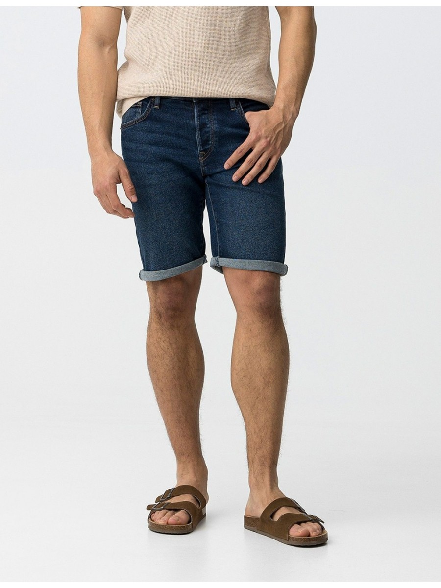 Pantalones cortos tipo bermudas de la marca Tiffosi. Modelo Bryan con corte slim y cintura media. Cierre de botones. Cinco bolsillos. Patrón lavado en color azul oscuro.