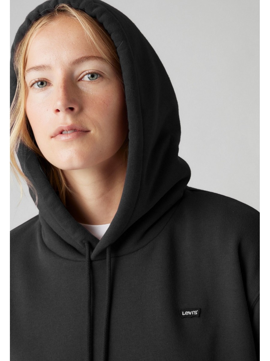 Sudadera de manga larga de la marca Levi's. Con corte regular fit. Capucha con cordones ajustables. Patrón liso en color negro con logo distintivo de la marca bordado en el pecho.